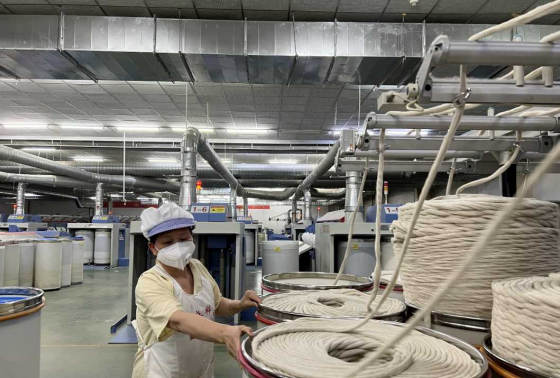 “我们打造的是智能化工厂,大大减轻了劳动强度。"李军介绍,该车间引进了棉纺织行业三万锭智慧化纱线制造生产线,使用全球领先的纺纱设备。目前棉纺车间正在生产的是来自越南和孟加拉国的海外100吨棉纺订单,总价值400万元。另外湿纺车间的3条生产线也正在抓紧生产来自意大利的,价值300万元的湿纺订单。
